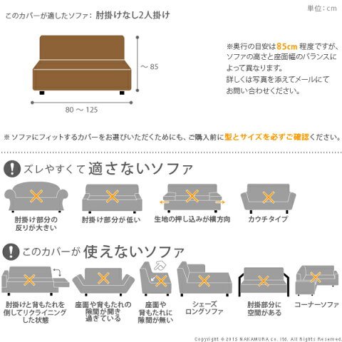 【カラーバリエーション】ブラウン・ホワイト・テラコッタ・ボルドー・グリーン【仕様】材質:綿60%、ポリエステル35%、ポリウレタン5%【サイズ】■適応ソファサイズ座面幅:約80〜125cm高さ:85cmまで奥行:85cm程度※奥行はソファの高さと座面幅のバランスによって異なります。