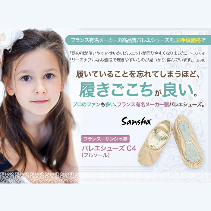 ※新しいバレエシューズは履き始め、滑りやすいことがございますのでご注意ください。